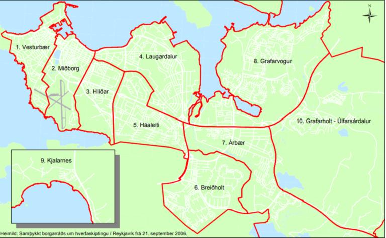 Svæði 1–5 á neðangreindu korti sýna þær staðsetningar sem koma til greina fyrir Konukot.