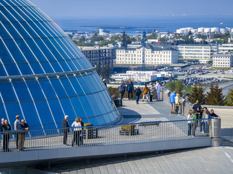 Perlan is one of the main tourist destinations in the city. The observation deck offers a magnificent view of the capital area and the surrounding mountains. Several exhibits are in Perlan, including an ice cave, a planetarium, and interactive displays about Icelandic nature and culture. The glass dome has a restaurant with a rotating floor and a fully equipped kitchen.