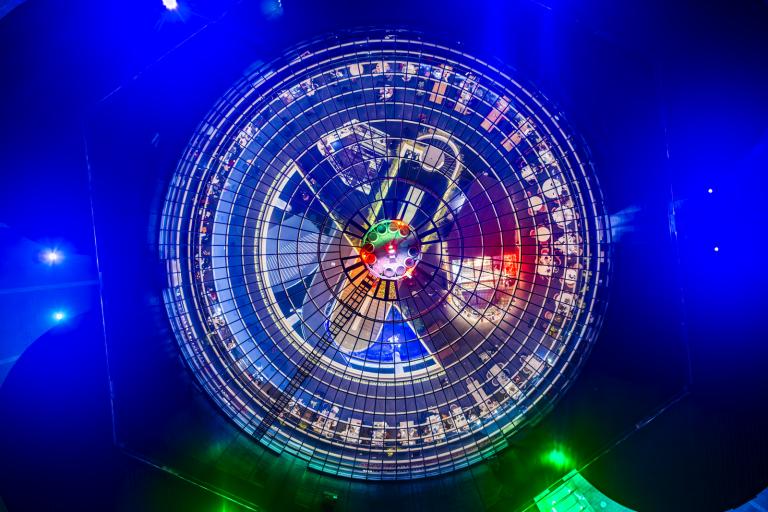 Perlan is a steel-framed building. The steel structure connects the geothermal utility tanks and forms the domed roof. The hollow steel frame also serves as Perlan's heating system.