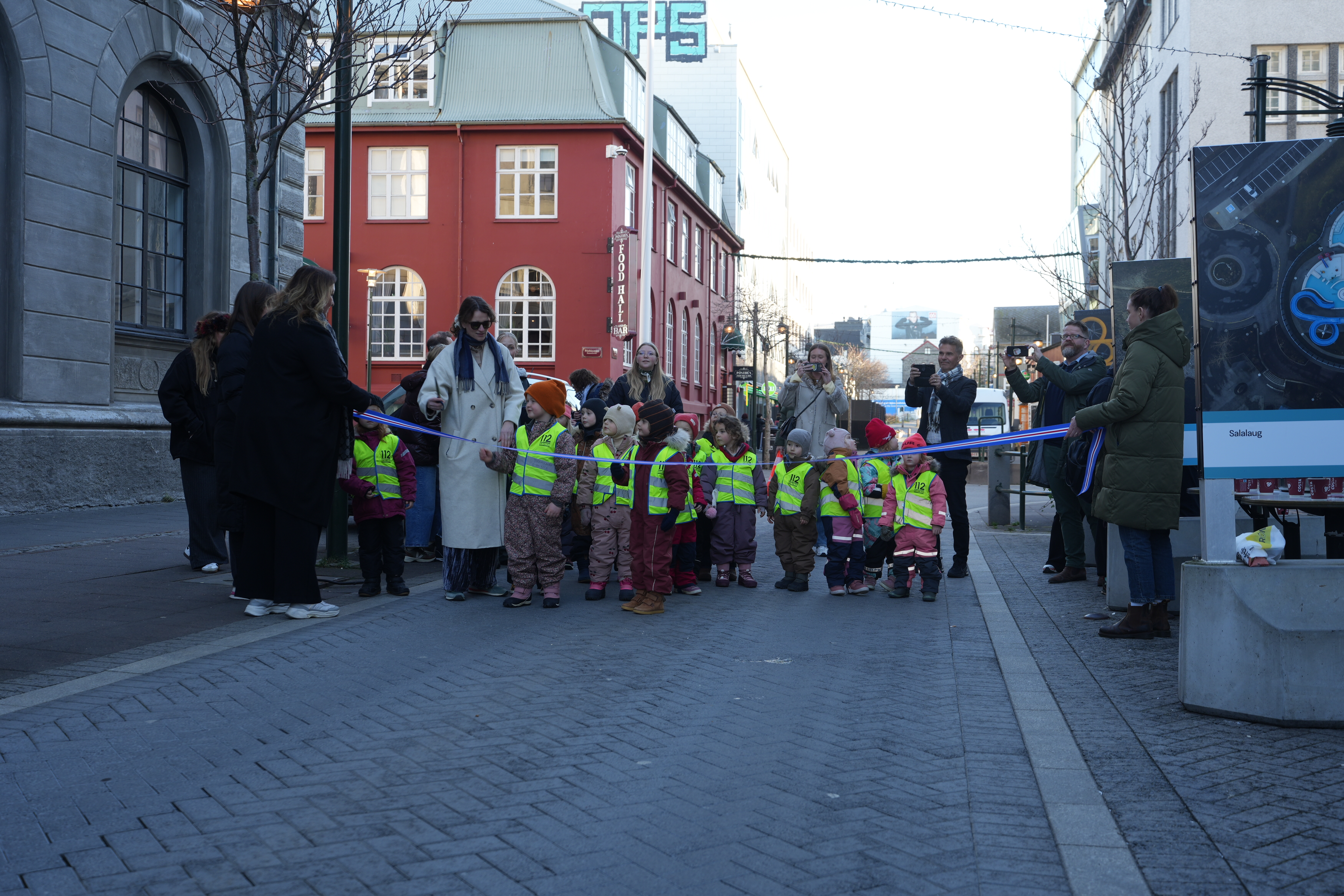 Dóra Björt Guðjónsdóttir, chair of the Environment and Planning Council, joined children from Tjarnarborg Preschool to dedicate the street before everyone headed off for hot chocolate and cookies.