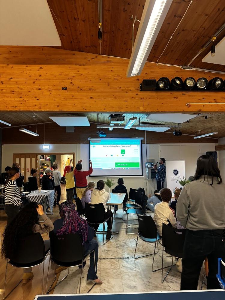 At Buskinn, families took center stage and guests actively participated in the program. There, brothers Olek and Pawel competed in a foosball game against their parents, Anna and Adrian, and were ahead when the game ended. The family moved to Iceland from Poland eight years ago, and the parents say they are very pleased with the youth center activities, which they consider crucial for keeping teens active and involved. They were impressed by the quality of the programs and say they don't know of comparable activities in their home country. Olek, who regularly attends Buskinn, lives 20 minutes away and says it's great to be able to come and meet his friends there.