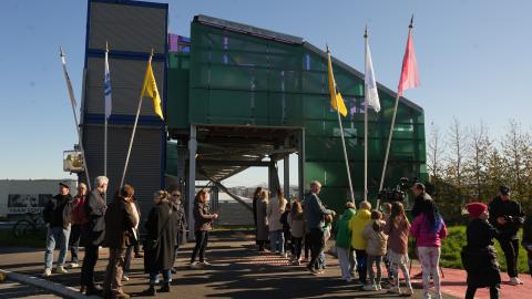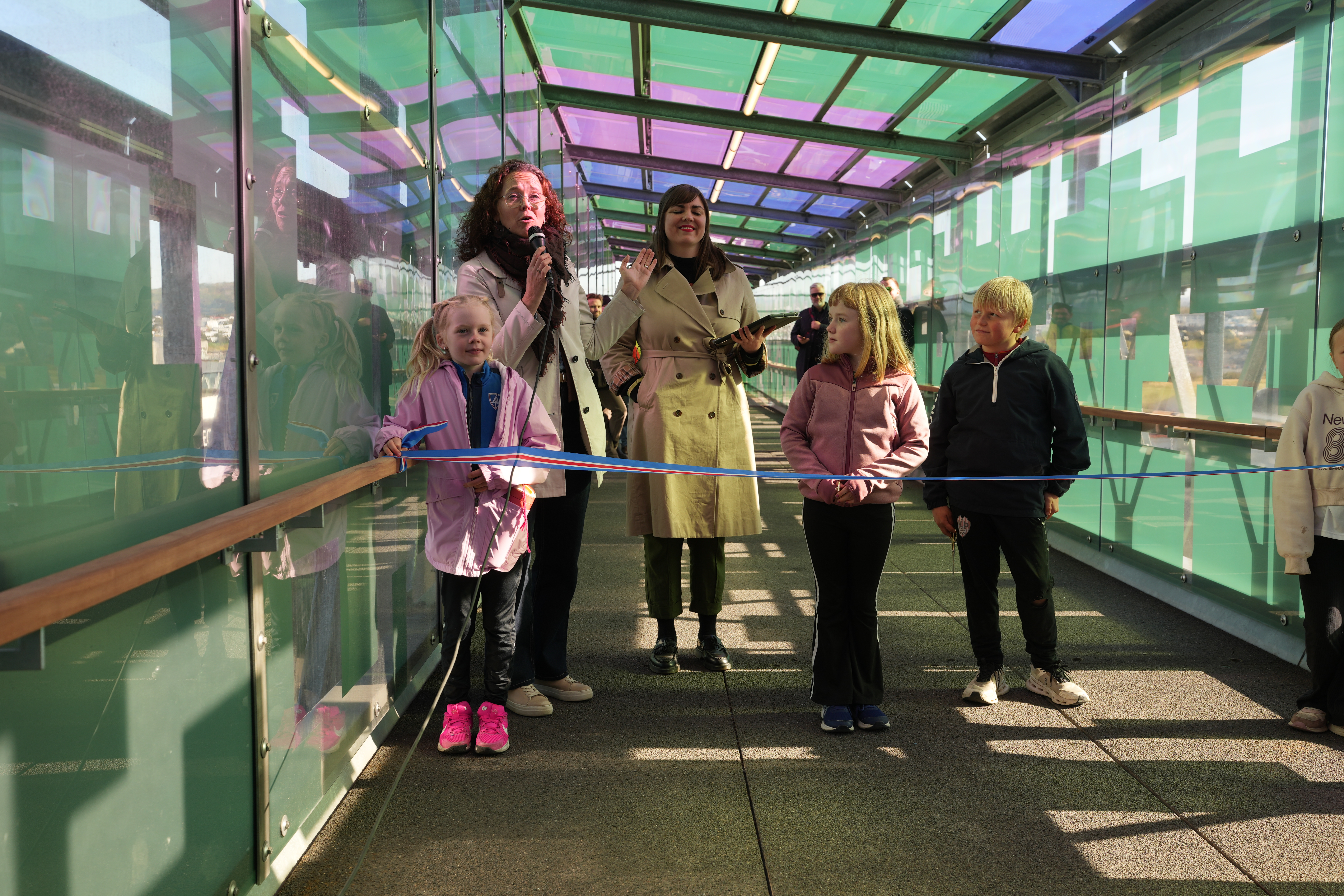 A new pedestrian and bicycle bridge over Sæbraut officially opened today. The bridge has been in use for several weeks but was officially opened during Mobility Week. Fifty fourth-grade children from Vogaskóli participated in the opening ceremony, and Circus Iceland performed entertainment at the site.