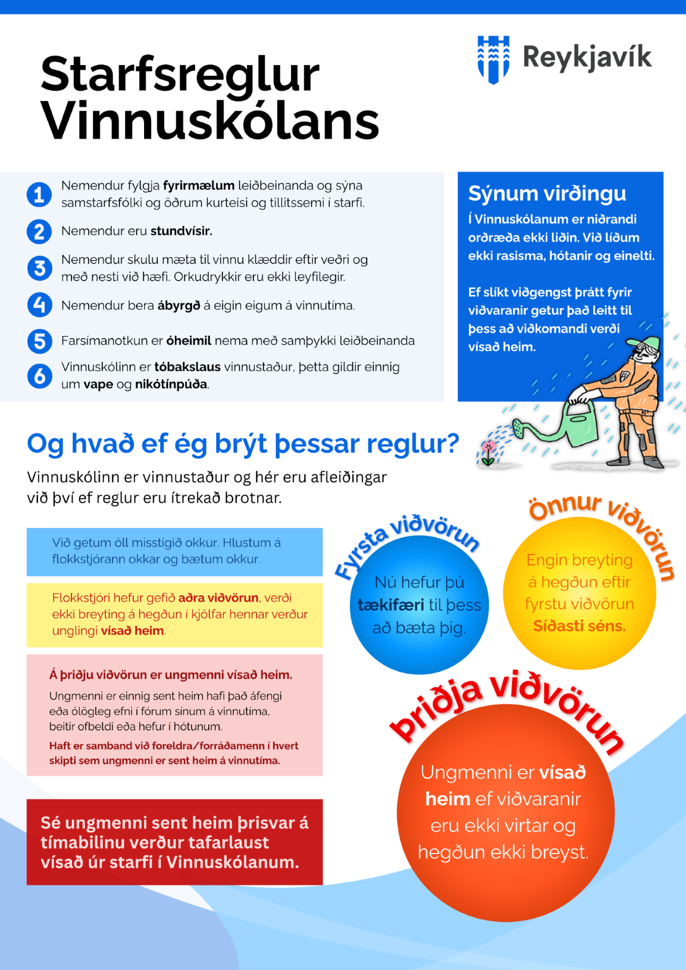 Send inquiries to vinnuskoli@reykjavik.is and we will respond promptly.