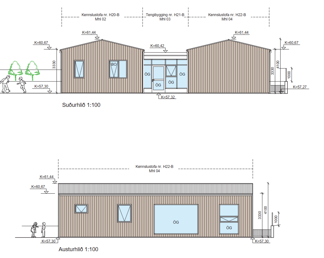 Samhliða verður tveimur færanlegum kennslustofum komið fyrir á norðausturenda lóðarinnar. Stofurnar eru 69m2 og 92m2 á einni hæð ásamt 39m2 tengibyggingu. Kennslustofurnar verða fullsmíðaðar úr timbri og fluttar í heilu lagi á verkstað og tengdar saman með tengibyggingu. Kennslustofunum er ætlað að fjölga deildum á leikskólanum auk þess að bæta aðstöðu starfsmanna.