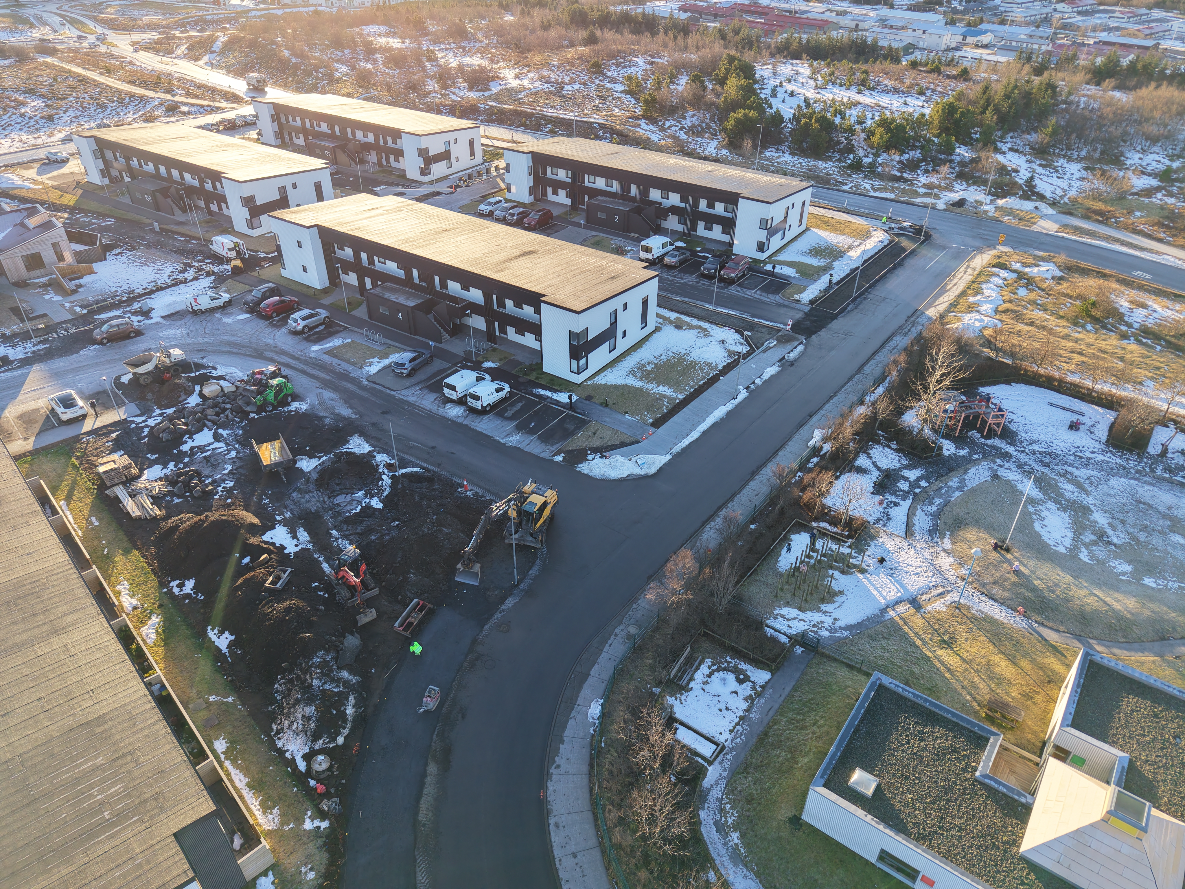 Nóvember: Steypuvinna er komin vel á veg ásamt ljósastaurum og jarðvinnu