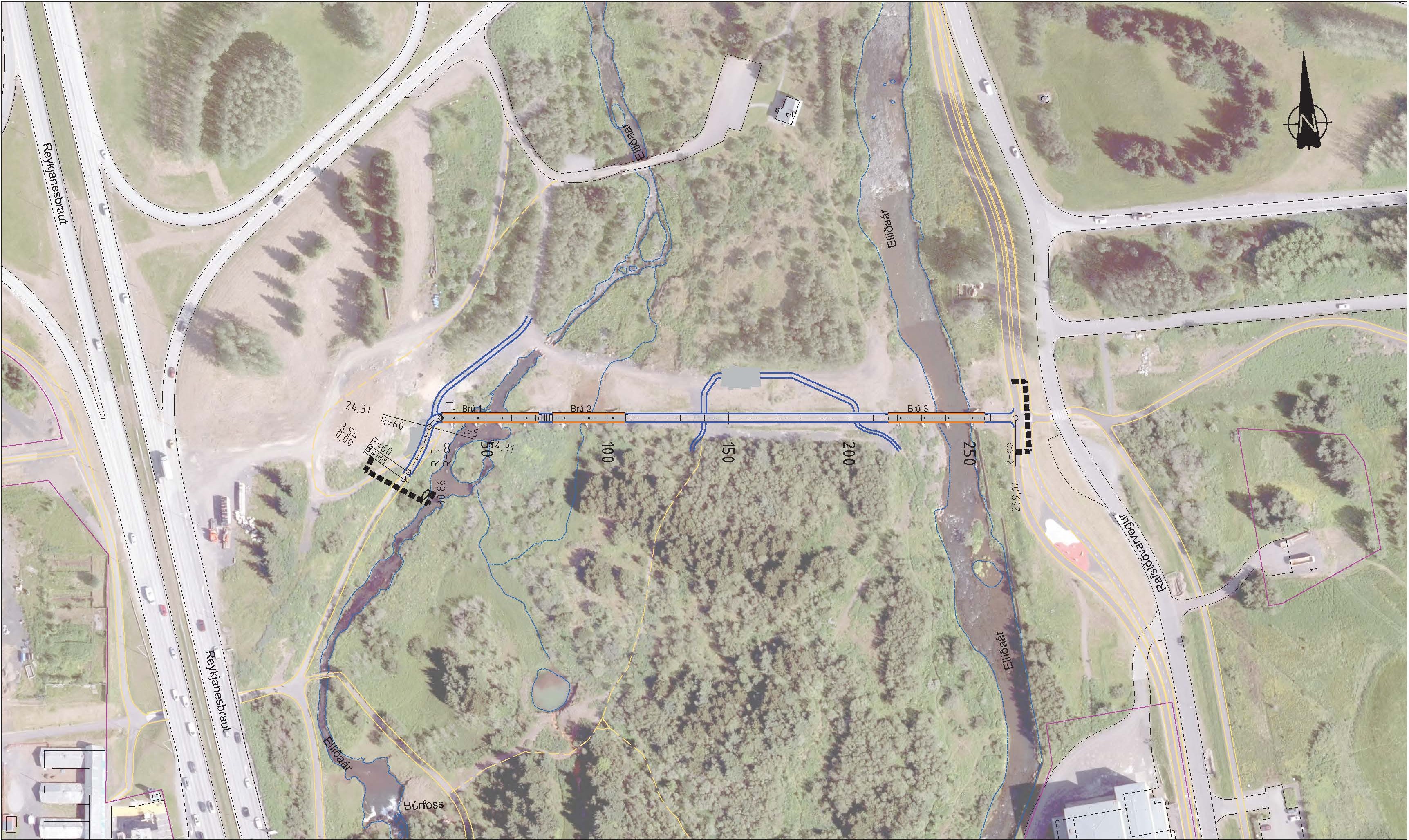 Verkið felst í gerð þriggja göngu- og hjólabrúa yfir Elliðaár á þeim stað sem áður var steyptur stokkur með stofnlögnum hitaveitu. Innifalið í verkinu er viðgerðarvinna við undirstöður stokksins sem notaðir verða sem brúarstöplar í verkinu. Í verkinu felst jafnframt gerð göngu- og hjólastígs sem tengist núverandi stígum beggja vegna árinnar og áningarstaður fyrir gangandi og hjólandi.
