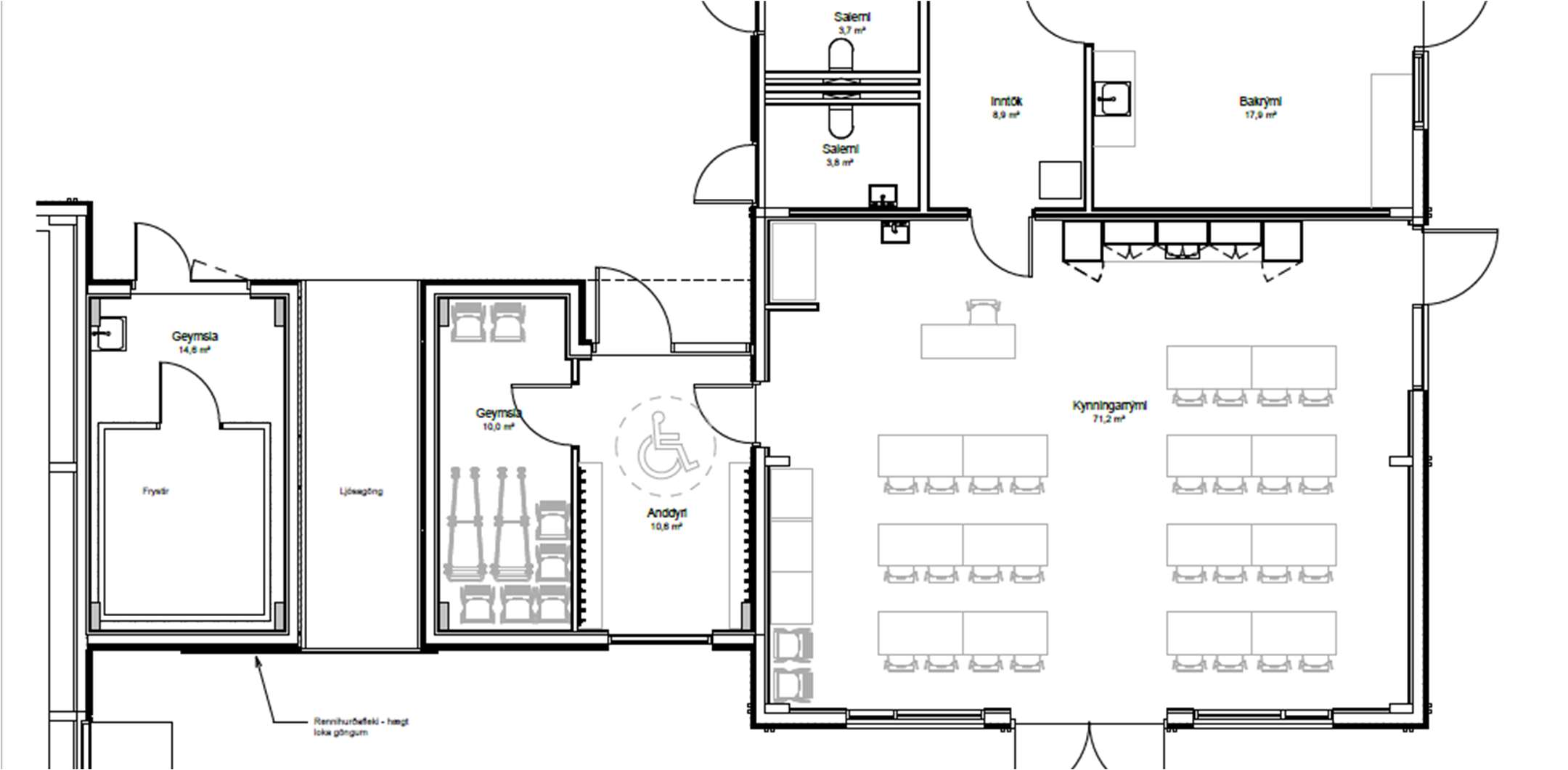 Heildarstærð rýmis er 71 m2. Eftir framkvæmdir mun rýmið nýtast í fræðslustarfssemi og kennslu fyrir skólahópa. Einnig verður hægt að nota rýmið fyrir sýningar og í almenna útleigu.