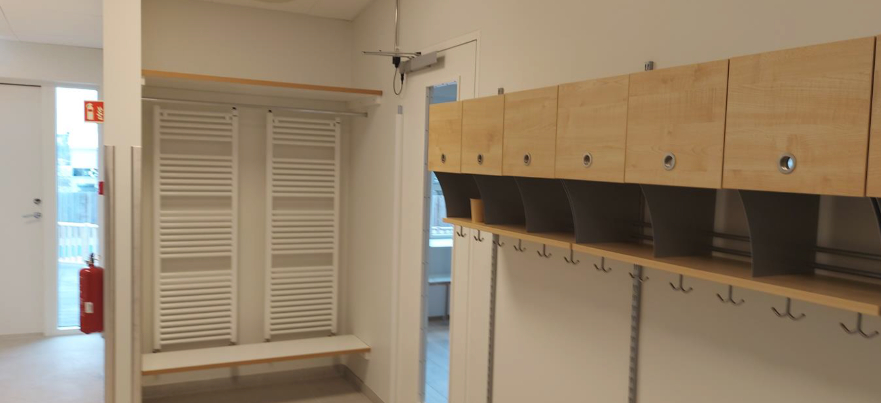 Unnið var við uppsetningu á skilrúmum og EI 30 hlerum á WC. Unnið var við breytingar á loftræsingu í eldhúsi til að auka innblástur í rýmið. Unnið var við uppsetningu á fatahólfum og tilheyrandi sem verkkaupi skaffaði. Lokamálun á gluggum þ.e. blettamálun kláraðist í byrjun mars.