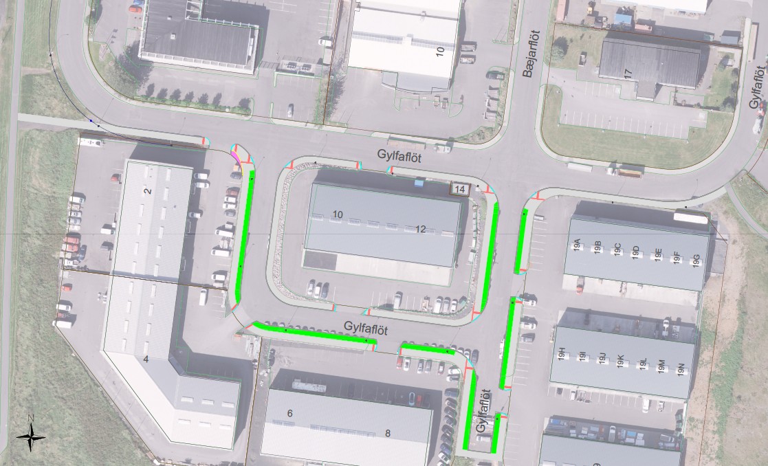 Verkið felst í megindráttum í gerð gangstétta. Innifalið er afmörkun með kantsteini, þökulagning en einnig skal ganga frá gangstéttum með steypu og hellulögn. Á einum stað er gert ráð fyrir að mögulega þurfi að jarðvegsskipta. Einnig skulu ljósastaurar uppsettir. (verðfyrirspurn 16294)