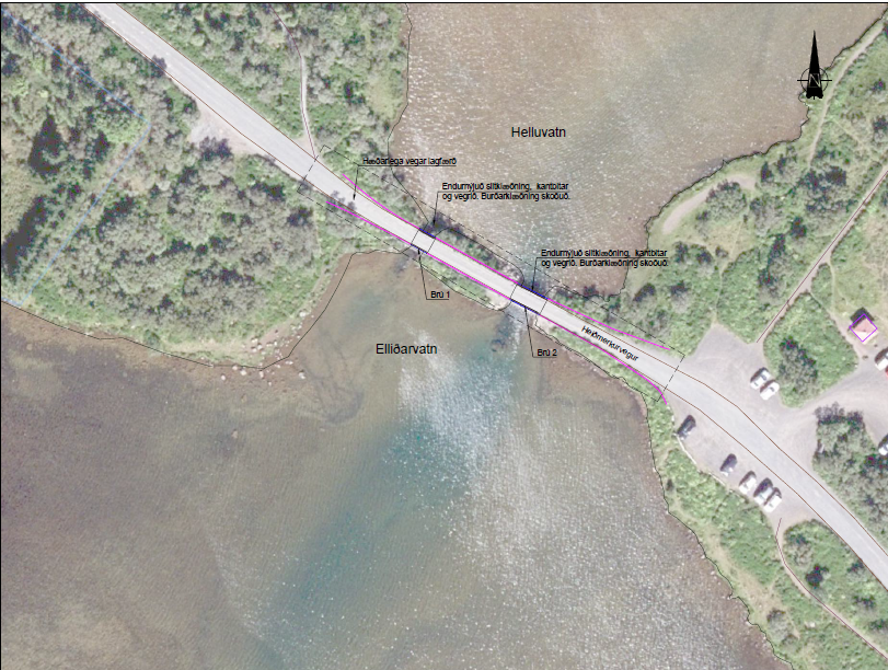 Verkið felst í að endurnýja burðar- og slitklæðningu brúnna milli Helluvatns og Elliðavatns.  Einnig skal endurnýja vega- og brúarvegrið ásamt því að hefla og laga malarslitlagið á veginum við brýrnar.