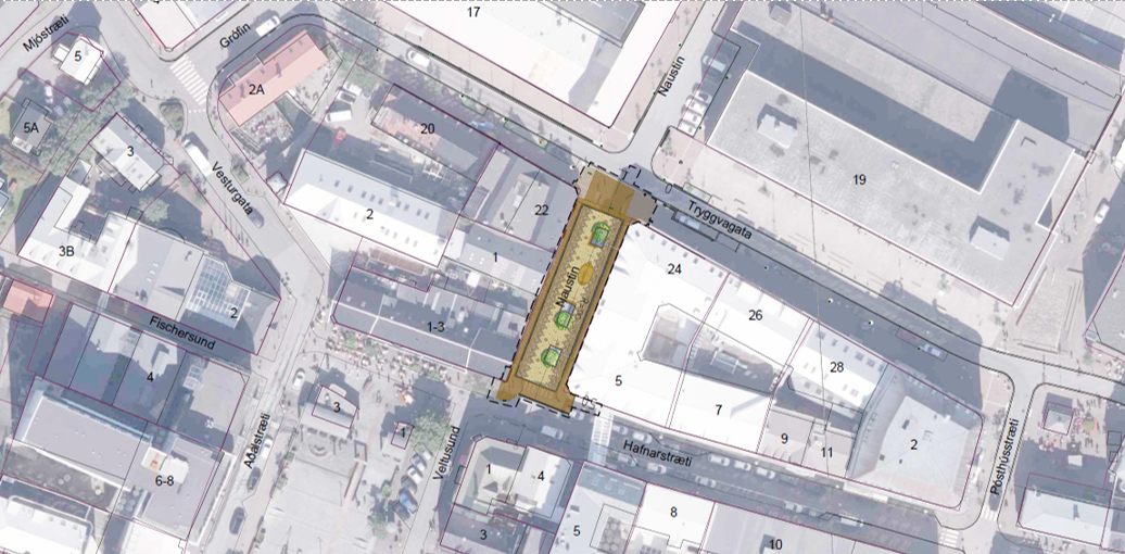 Verkið felst í endurgerð götu og uppfærslu veitna í Naustunum milli Tryggvagötu og Hafnarstrætis. Gatan verður vistgata til að byrja með og seinna meir göngugata.