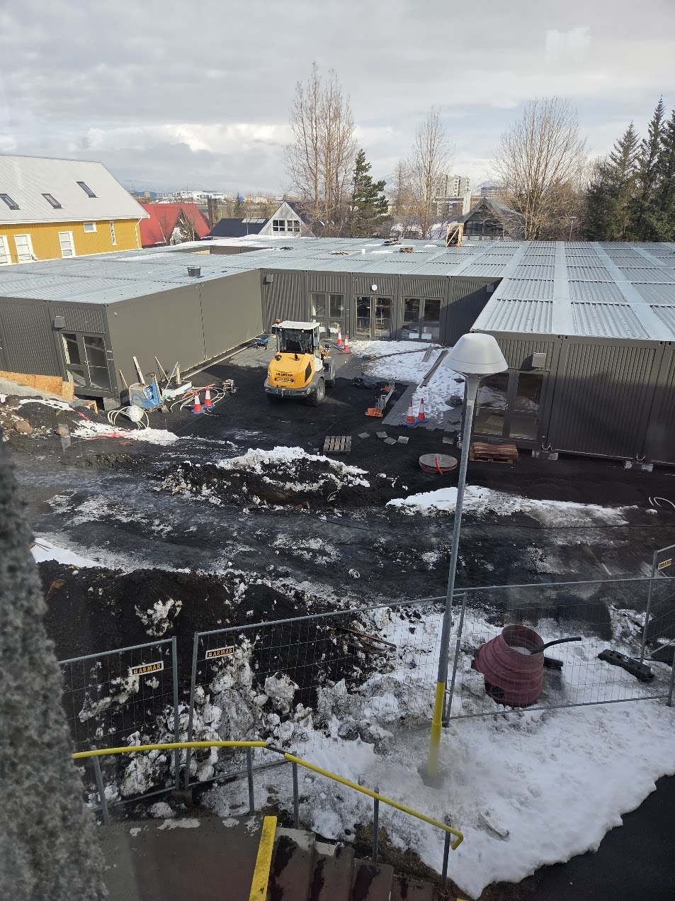 Vinnu við uppsetningu á færanlegum kennslustofum miðar vel áfram. Ráðgert er að hefja kennslu í stofunum síðar í mánuðinum.