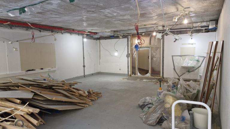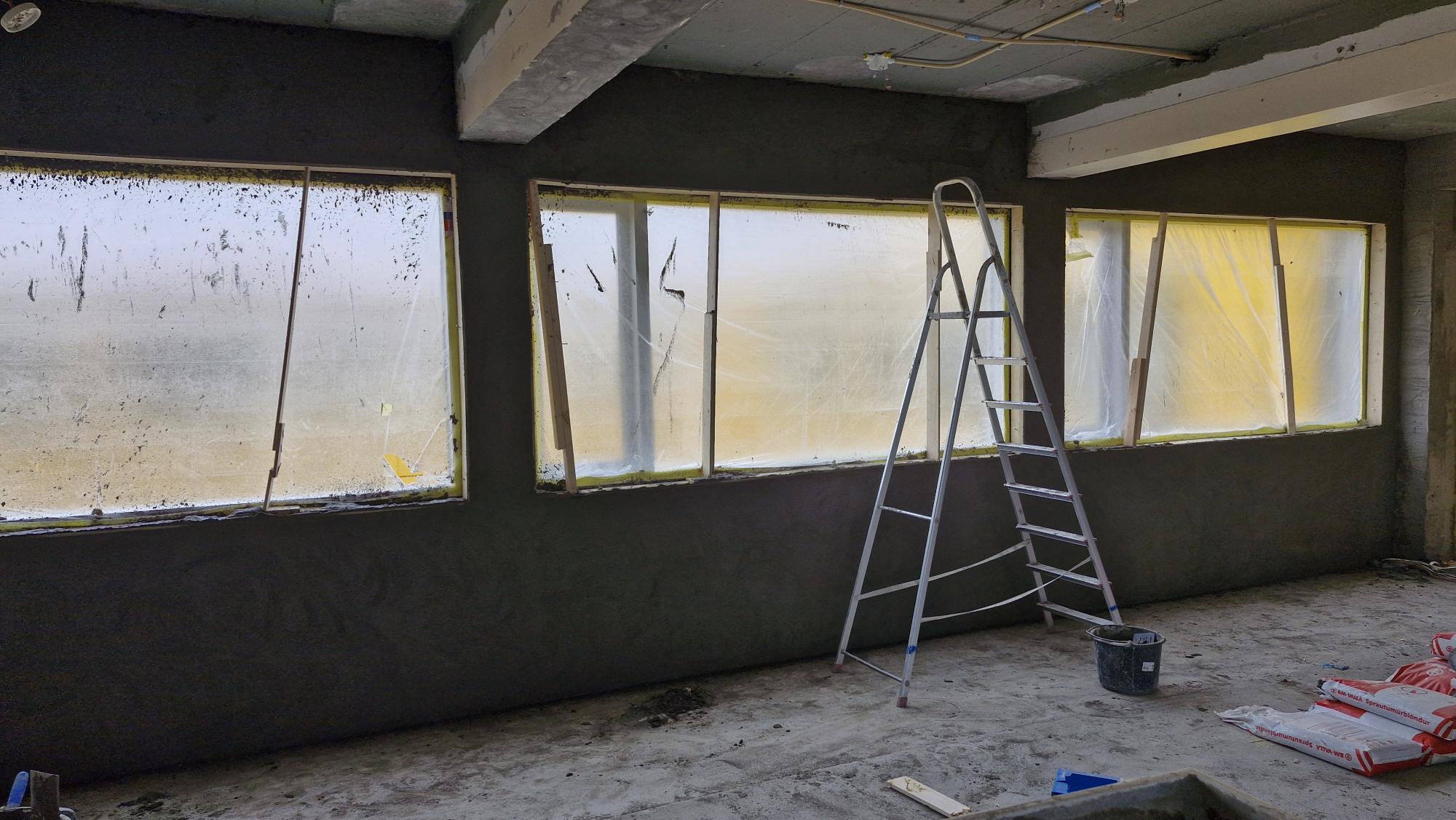 Endurnýjun á stofum 18 og 19, sem eru nærri kaffistofunni og frístundinni, er langt komin.