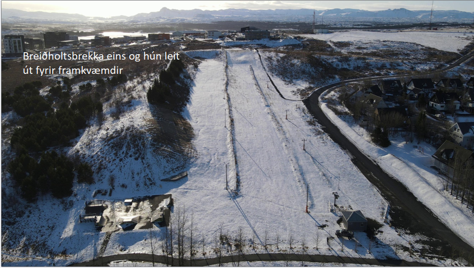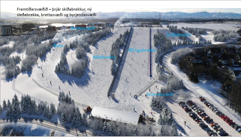 • Áformað er að hefja vinnu við jarðvegsskipti og aðrar undirbúningsframkvæmdir við bílastæði neðst á svæðinu haustið 2025.