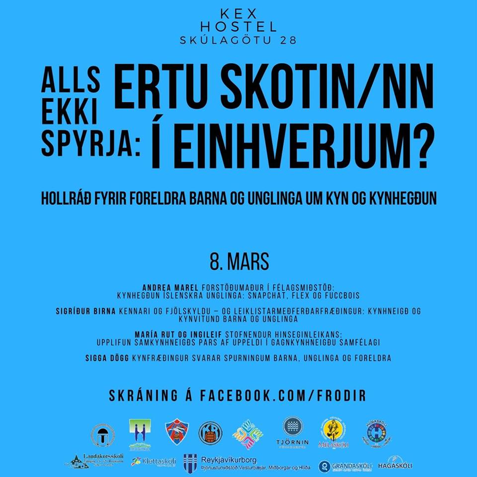 Fróðir foreldrar standa fyrir fræðslukvöldi um kynvitund barna og unglinga þar sem foreldrum verða gefin holl ráð um kyn og kynhegðun. Að þessu sinni hittast foreldrar á Kex hostel í kvöld, 8. mars klukkan 20. Færri komast að en vilja og því verður bein útsending frá fræðslunni.