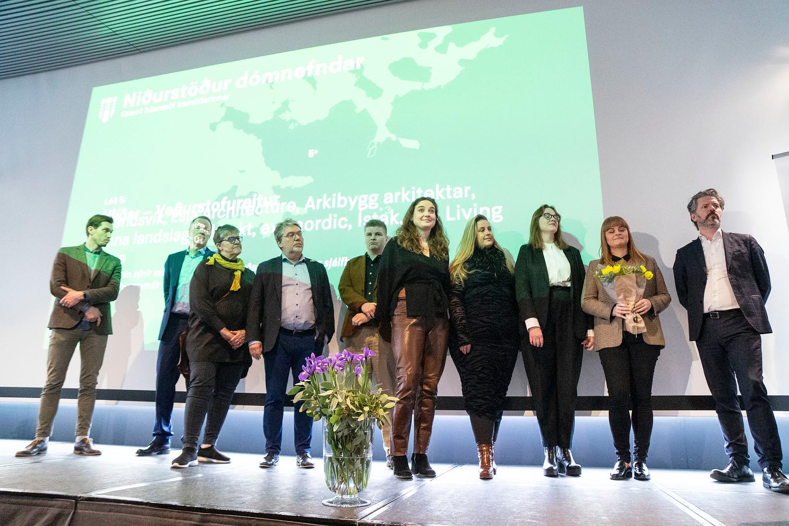 Það voru verkefnisstjórar verkefnisins, þau Hulda Hallgrímsdóttir og Hilmar Hildar Magnúsarson, sem tilkynntu um úrslitin og tóku sigurteymin við hamingjuóskum og blómum á sviðinu frá Degi B. Eggertssyni borgarstjóra. Einn vinningshafa á Frakkastígsreit, Björt Ólafsdóttir framkvæmdastýra Iðu fasteignaþróunarfélags, sagðist við það tækifæri vilja þakka Reykjavíkurborg. Hún sagði að ekkert annað sveitarfélag, þótt mörg þeirra væru að gera vel, hefði komið af stað þróunarreitum þar sem svo strangar kröfur væru settar um græna uppbygginu. „Við verðum að breyta um kúrs- og skipta um aðferðir,“ sagði Björt. „Það ætlum við að gera og vonumst til að gera okkur öll stolt af því. Takk fyrir ykkar framsýni.“