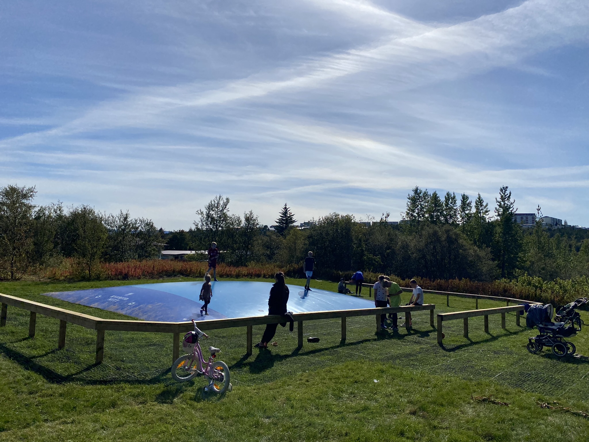 Meðfylgjandi myndir voru teknar við ærslabelginn í Árbæ sem hefur gert marga krakka hoppandi glaða síðustu vikur og er orðinn mikill samkomustaður krakka í hverfinu.