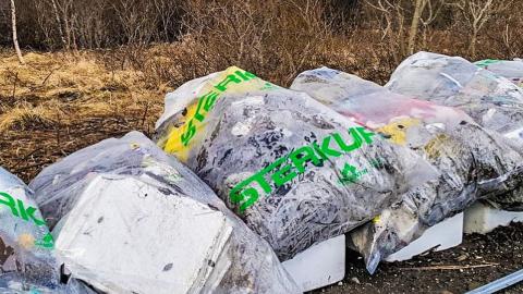 Glærir pokar fullir af rusli sem plokkarar hafa tínt upp.