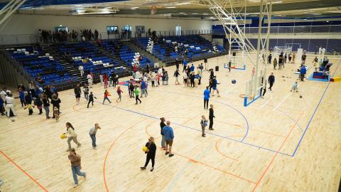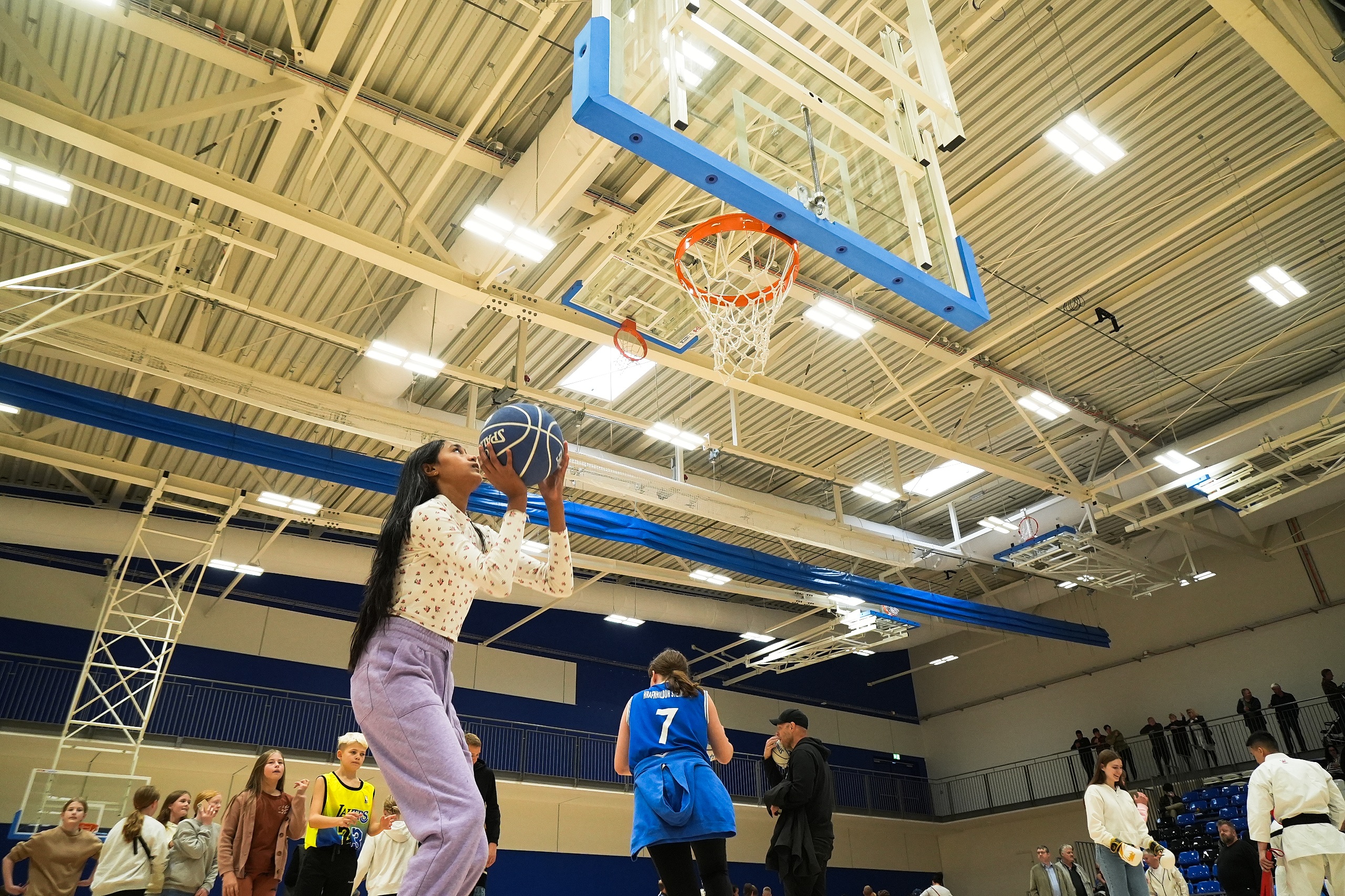Dagur B. Eggertsson borgarstjóri vígði í dag nýtt og stórglæsilegt íþróttahús ÍR við Skógarsel. Parkethöllin svokallaða mun í framtíðinni þjóna sem heimavöllur bæði handknattleiks- og körfuknattleiksdeilda félagsins.