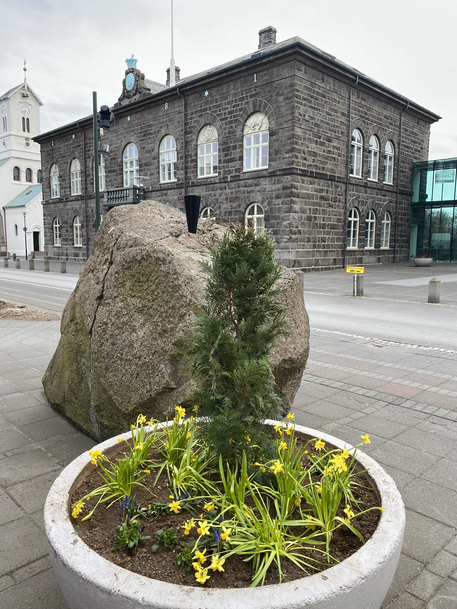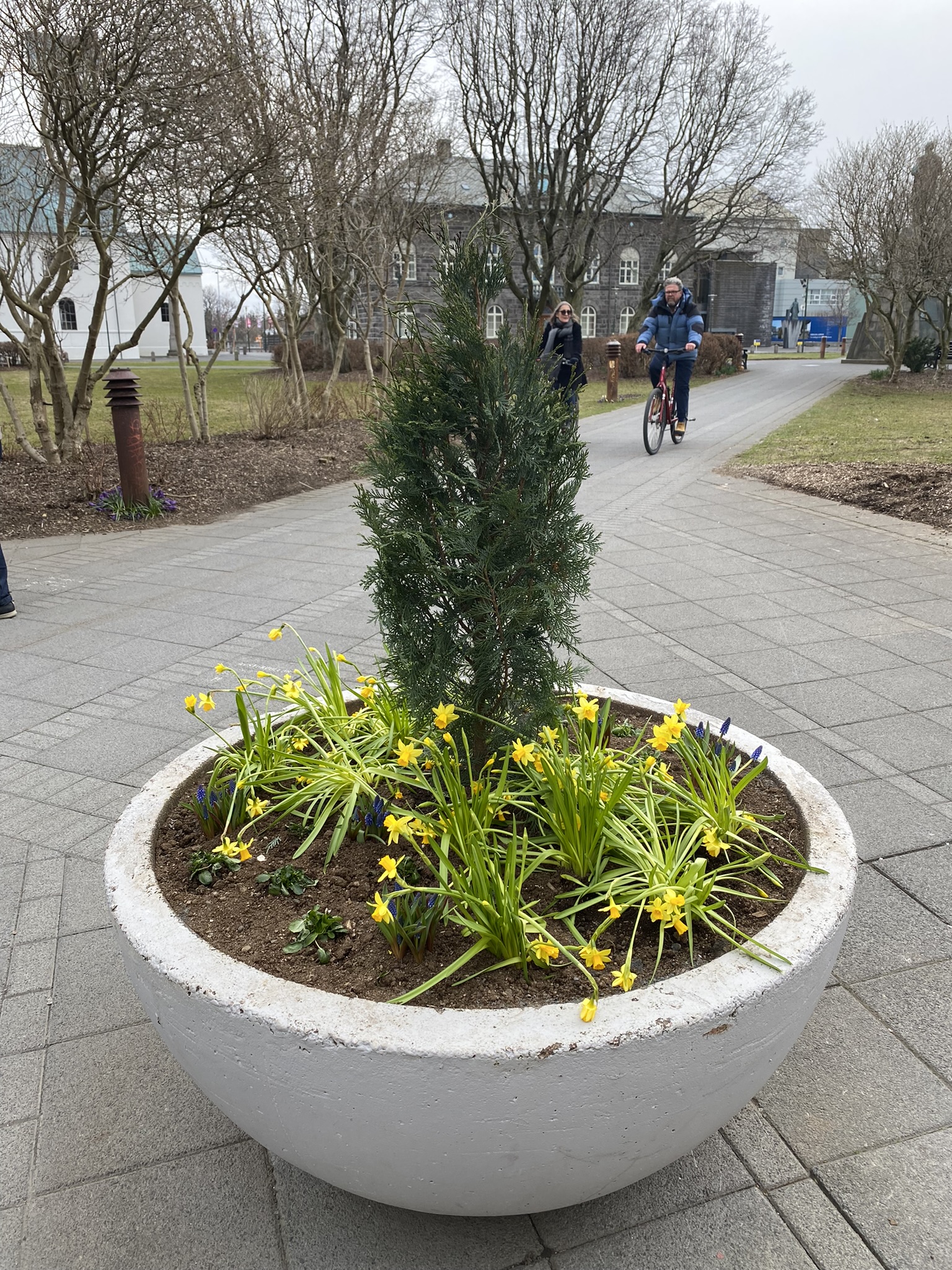 Misjafnt er á milli ára hversu vel gengur að setja niður skreytingarnar. „Veðrið getur verið að stríða okkur,“ segir Karen en í fyrra reyndist erfitt að koma blómunum niður. „En þetta gekk eins og í sögu núna,“ segir hún en starfsfólk garðyrkjunnar setti niður í kerin á fimmtudag, föstudag og mánudag og þess má geta að gróðurhúsið við Lækjartorg er líka komið í páskabúning.