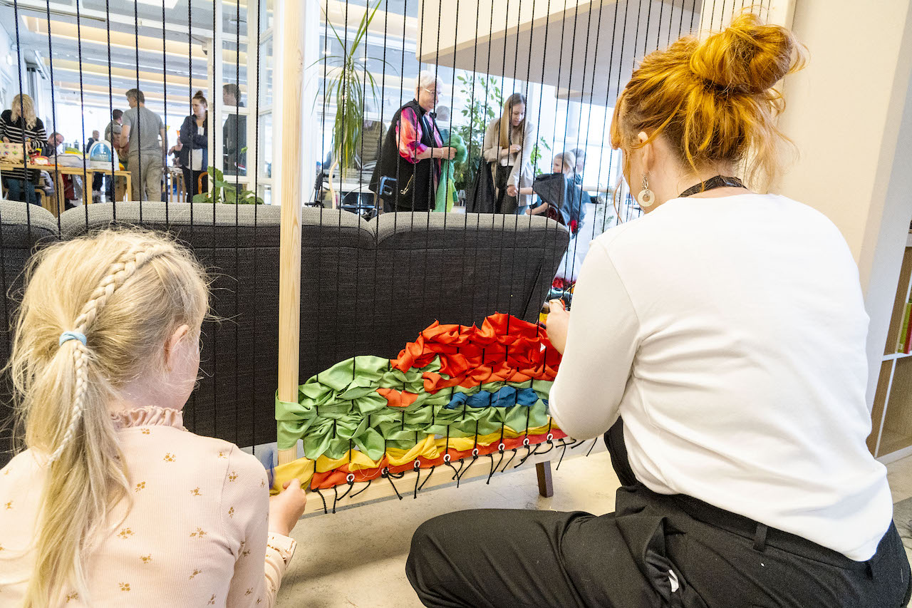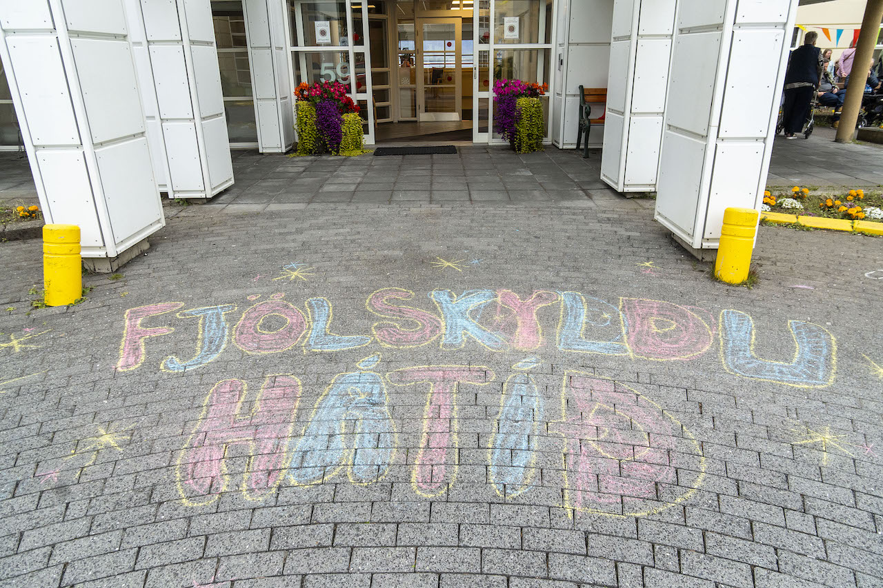 Þetta var þriðji fjölskyldudagurinn á vegum samfélagshúsa Reykjavíkurborgar í sumar. Sá fyrsti var haldinn í júní í samfélagshúsinu í Bólstaðarhlíð og annar í samfélagshúsinu að Aflagranda í júlí. Allir dagarnir voru vel sóttir af fólki á öllum aldri. Skemmtiatriðin voru mörg og margvísleg, grillaðar voru pylsur, haldinn flóamarkaður og fleira. Á svæðið mætti fólk sem er nýflutt til landsins og nýtt í hverfinu, fjölskyldur úr hverfinu, ömmur og afar með barnabörnin sín og aðrir fastagestir samfélagshúsanna. Með því var tilganginum náð, segir Drífa Baldursdóttir, verkefnastjóri samfélagshússins á Vitatorgi. „Við fengum sameiginlegan styrki úr Lýðheilsusjóði Reykjavíkurborgar til að halda þrjá fjölskylduviðburði, sem við gátum notað til að borga listamönnum. Svo leitum við í allt skapandi fólkið sem starfar í samfélagshúsunum. Plötusnúðurinn okkar er til dæmis öryggisvörður á daginn og veflistakonan sem hélt utan um stórt og fallegt veflistaverk sem unnið var á staðnum vinnur líka hjá okkur.“