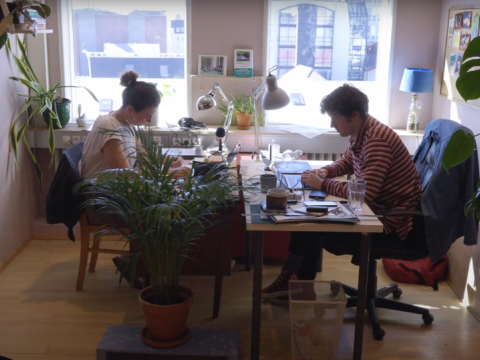 Rýmið er um 3.000 fermetrar og um 90 herbergi sem nýtast með ýmsum hætti. Nú hafa um sjötíu skapandi einstaklingar komið sér fyrir og René segir að þau reyni að skapa lifandi stemningu í húsinu og gæta þess að það sé hæfileg blanda allra greina.