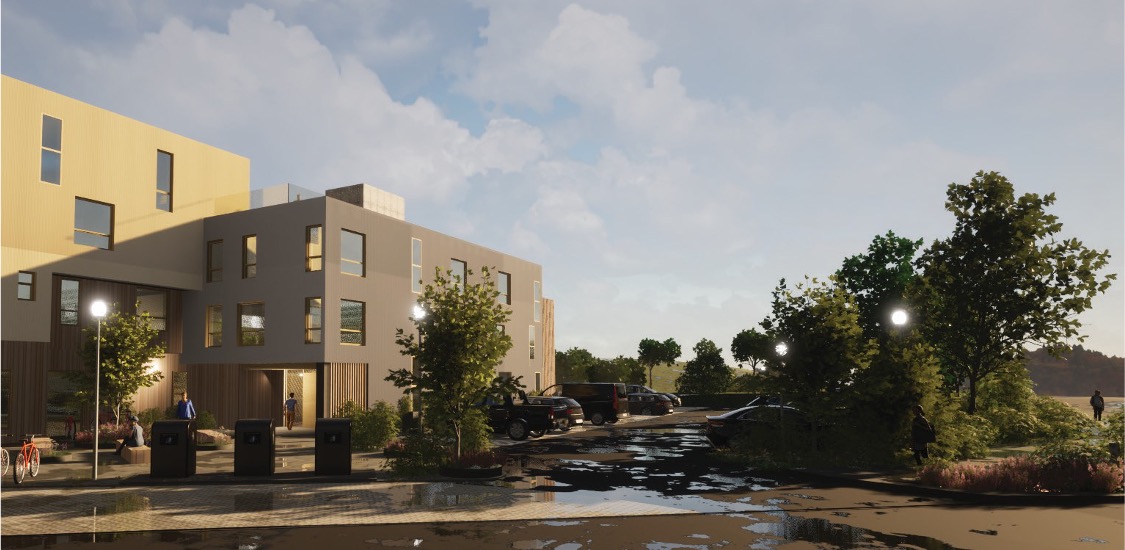 Nauðsynlegt er að gera breytingu á hverfisskipulagi þar sem verið er að stækka lóðina. Það er gert til að koma fyrir 28 bílastæðum, þar af þremur fyrir hreyfihamlaða og aðstöðu fyrir djúpgáma. Gerð er krafa um að gróður umlyki stæðin, sem er í takt við grænt svæði þarna í kring.