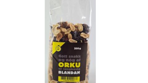 Nathan & Olsen, að höfðu samráði við Heilbrigðiseftirlit Reykjavíkur, hefur innkallað frá neytendum Orkublöndu, blanda af jarðhnetum, rúsínum, kasjúhnetum og möndlum í hýði, vörumerki Krónan.