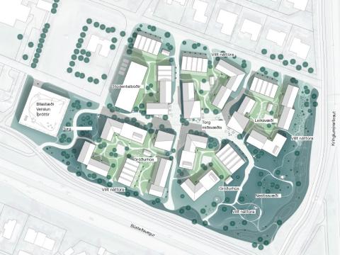 Landmótunin sækir innblástur í það ísaldarlandslag sem nú þegar er til staðar á hæðinni þar sem náttúra og gróður fléttast saman við og stækkar inn í hið byggða umhverfi. Veðurstofureiturinn verður á þennan hátt borgarhverfi sem er samtvinnað náttúrunni.