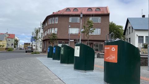 Grenndarstöð með djúpgámum við Freyjugötu.