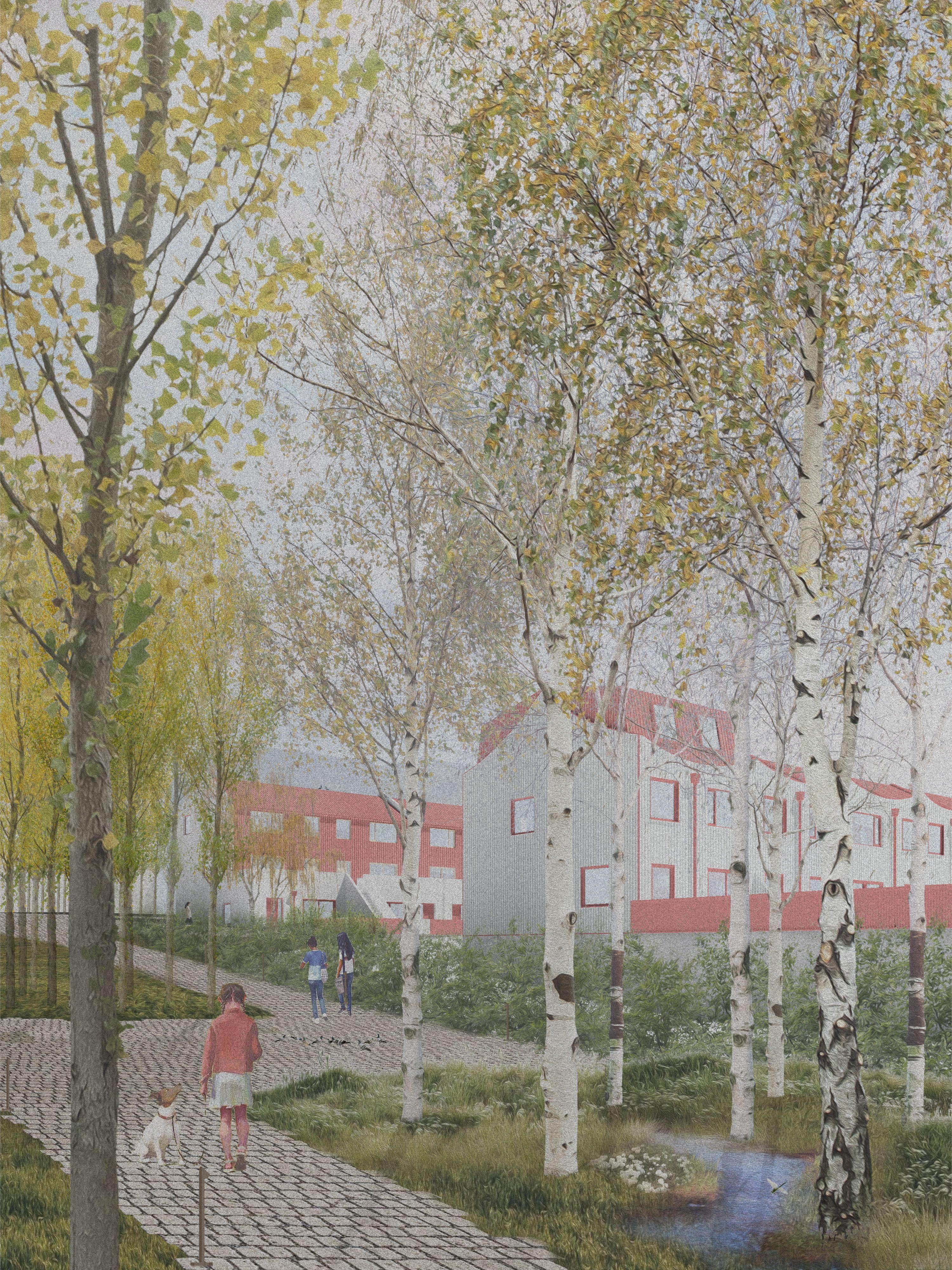 Lóð fyrir íbúðarbyggð er samtals 5.095 m² að stærð, með byggingarmagni alls 7.125 m². Innan skipulagssvæðisins er einnig borgarland alls 6.940 m² og þar verður vistgata, fjölbreytt græn svæði með leikvelli og göngustígum og er áhersla lögð á blágrænar ofanvatnslausnir við útfærslu svæðisins. Fjöldi trjáa verður aukinn verulega á borgarlandi. Fjölbreyttur gróður í regnbeðum, votlendi og trjárækt mun auka líffræðilegan fjölbreytileika svæðisins.