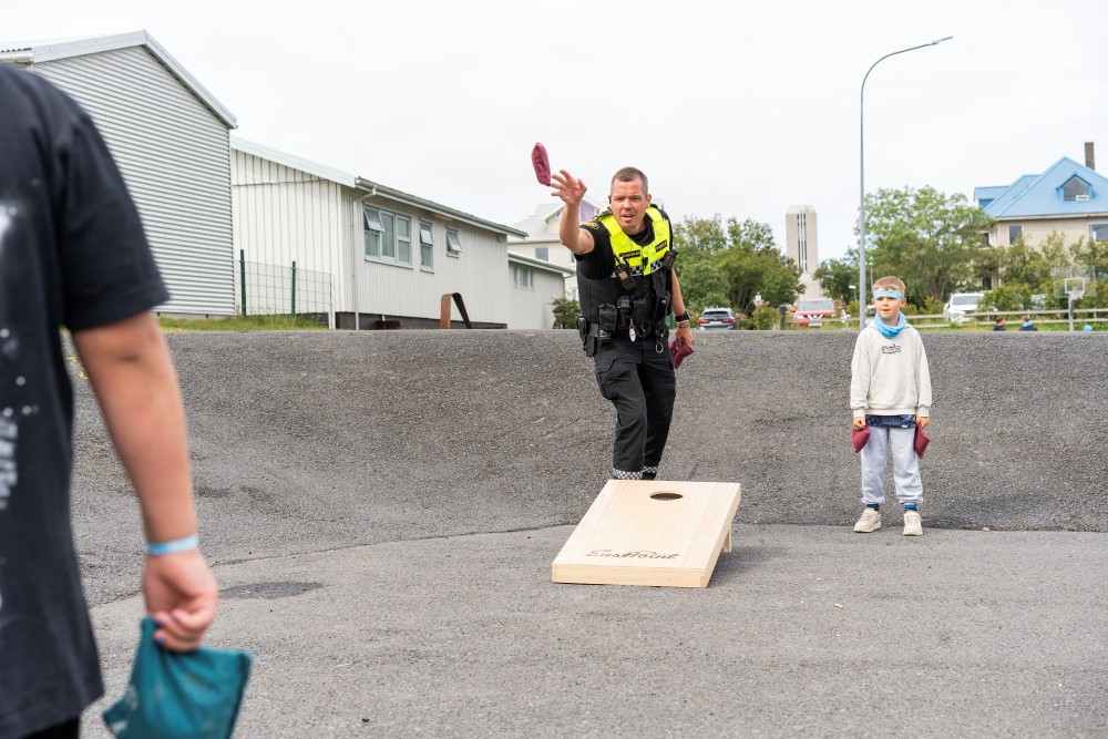 Samfélagslöggan tók virkan þátt í hátíðinni og mætti með tvö mótorhjól og lögreglubíl. Börnin fengu að skoða ökutækin, sitja á hjólunum og spjalla við lögregluna sem vakti mikla lukku og áhuga.