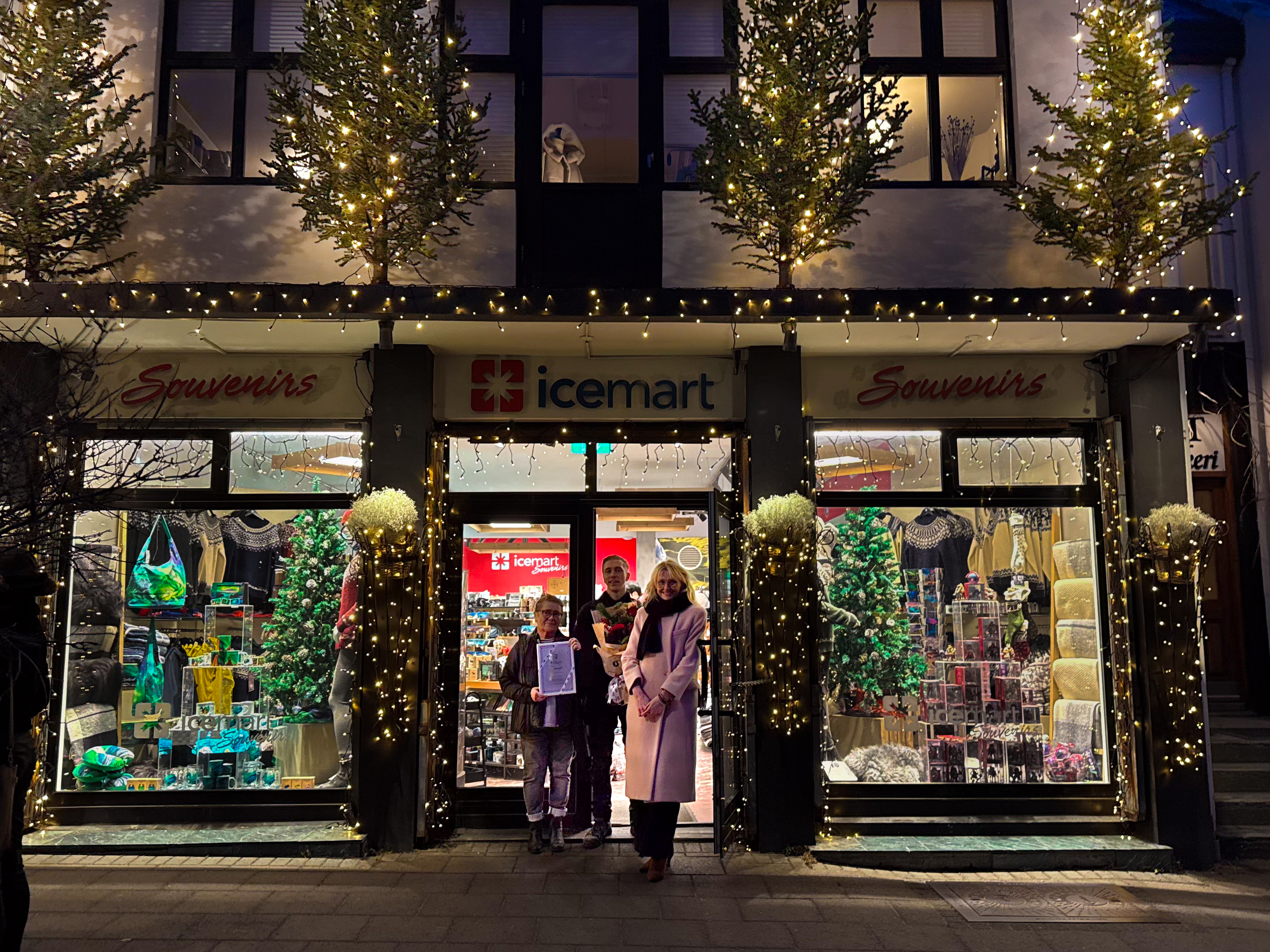 Icemart á Skólavörðustíg 38 hlýtur viðurkenninguna fyrir fallegustu jólaskreytinguna í ár. Skreytingin er glæsileg, hlýleg og fellur vel að umhverfinu í hjarta miðborgarinnar.