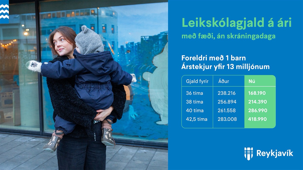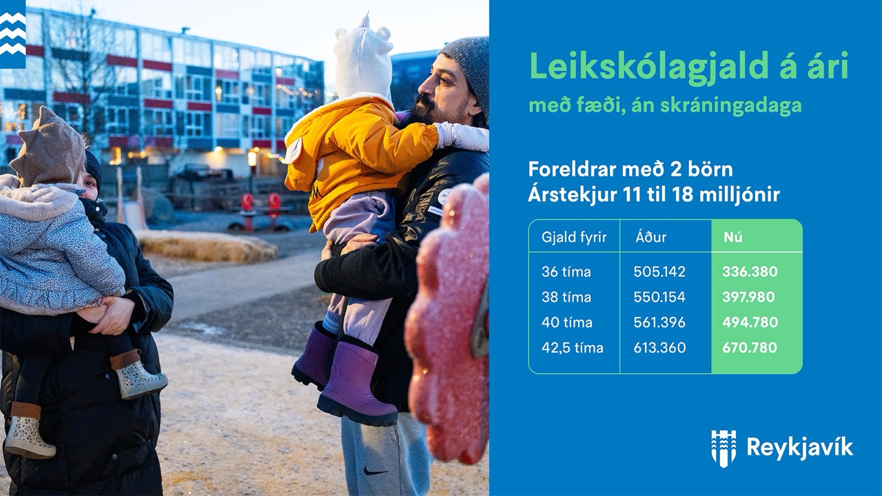 Ein af stærstu breytingunum er að boðið verður upp á 36 tíma gjaldfrjálsa leikskóladvöl á viku. Foreldrar greiða eingöngu fyrir fæði ef dvalartíminn er innan þessara marka. Þetta getur verið verulegur ávinningur fyrir stóran hóp foreldra og lækkað gjöld hjá mörgum fjölskyldum.