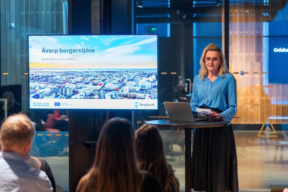 Heiða Björg Hilmisdóttir borgarstjóri opnaði fundinn. Hún ræddi um að nýsköpun þrífist vel í Reykjavík og hér hafi margar nýjar hugmyndir orðið að veruleika og hvernig nýsköpunarsamfélagið og borgin gætu náð markmiðinu um kolefnishlutleysi saman.