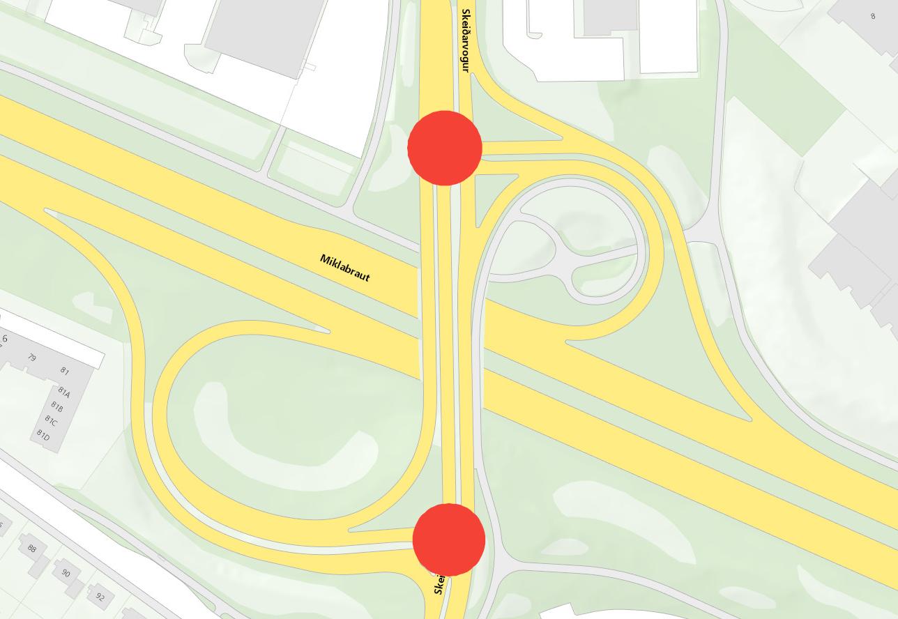 Vegna umferðaröryggis verður loka fyrir vinstribeygjuumferð frá Miklubraut inn í Réttarholtsveg/Skeiðarvog til norðurs og suðurs.
