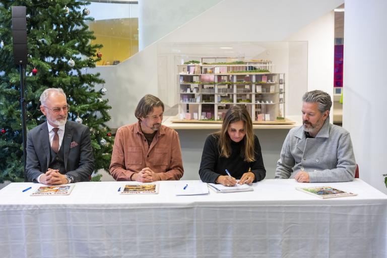 Einnig tók til máls Barbara Guðnadóttir, safnstjóri Borgarbóksafnsins í Grófinni en Borgarbókasafnið er hundrað ára í ár og er undirskriftin mikið gleðiefni og kærkomin afmælisgjöf. „Þetta er merkur áfangi fyrir okkur sem störfum hjá Borgarbókasafninu, fyrir þá sem hafa staðið að vali á hönnun fyrir nýtt safn, fyrir hönnuðina en alveg sérstaklega fyrir borgarbúa,“ sagði hún.