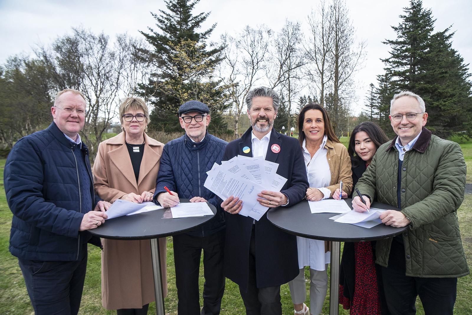 Þau undirrituðu viljayfirlýsingarnar: Böðvar Jónsson frá Byggingarfélagi Námsmanna, Sigrún Árnadóttir framkvæmdastjóri Félagsbústaða, Árni Stefán Jónsson stjórnarformaður Bjargs, Dagur B. Eggertsson borgarstjóri, Guðrún Björnsdóttir framkvæmdastýra Félagsstofnunar Stúdenta, Isabel Alejandra Diaz, formaður stúdentaráðs Háskóla Íslands og Bjarni Þór Þórólfsson framkvæmdastjóri Búseta.