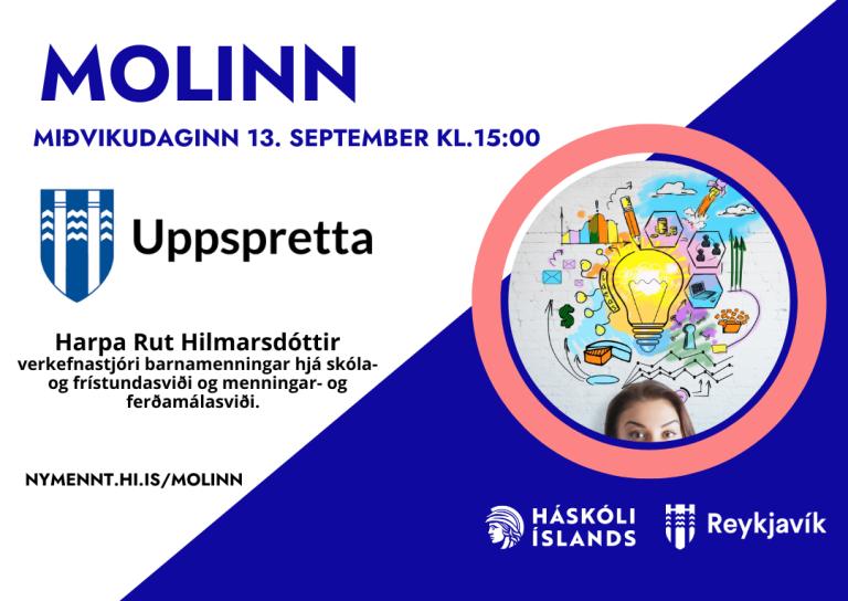 Molinn hefur hafið göngu sína og margt áhugavert er framundan fyrir starfsfólk í skóla- og frístundastarfi. Molinn er samstarfsverkefni skóla- og frístundasviðs Reykjavíkurborgar og Menntavísindasviðs Háskóla Íslands. Um er að ræða fjölbreyttar kynningar á málefnum um skólastarf. Fyrsta kynningin var í síðustu viku og sú næsta á morgun sem fjallar um Uppsprettu.