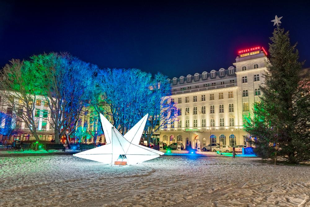 Ljósaverk prýða Austurvöll á Vetrarhátíð 2022.