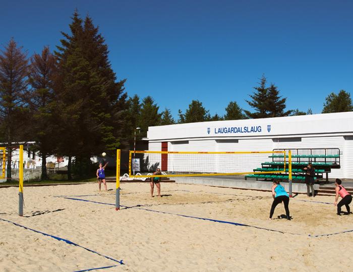 Við Laugardalslaug eru tveir strandblaksvellir sem henta bæði fyrir léttan leik og æfingar með félögum.
