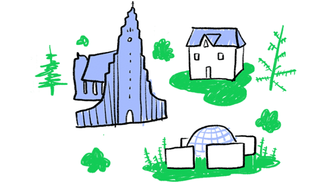 - Umhverfi og náttúra Garðar, torg og græn svæði.